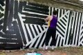 Россиянин с помощью кисточки, красок и мусорных мешков стал облагораживать пространство. Сначала он навел порядок, что-то починил и закрасил рекламу наркоботов на стене.