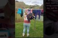 В видеоролике на своей странице в TikTok, которую девушка ведет под псевдонимом @leralynn27, она показала, как сперва складывает мокрые вещи одна на другую, а после получившуюся кипу мокрых вещей располагает на плече, чтобы развешать на веревке на своем придомовом участке.