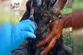 Как передает канал, спасатели в Карабулаке проснулись в 5 утра от лая и визга. Через дорогу в яме они увидели щенка, застрявшего под забором в смоле. Ночная смена не смогла отмыть собаку до конца, им на помощь пришел второй отряд. Для очищения шерсти пострадавшего использовали керосин.