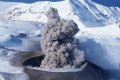 На кадрах, снятых с дрона, виден огромный кратер вулкана, из которого валит густой серый пепел. По данным вулканологов, кучерявые столбы достигли в высоту 2,5 километра, а пепловый шлейф распространился в восточном направлении на расстояние до пяти километров. Окружающие Эбеко горы стоят полностью покрытые снегом.