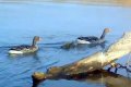 На кадрах видно, что гуси с гусятами проплывают мимо ствола дерева, лежащего в воде, но им мешает ветка. Взрослые птицы легко преодолели ее, но у маленьких гусят возникли трудности. Однако они справились, повторив за родителями.