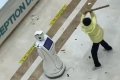 Несмотря на повреждения и разбросанные детали, робот продолжает двигаться и пытается поднять руки. Видео обрывается на моменте, когда женщина снимает пиджак, очевидно, готовясь нанести еще больше ударов.