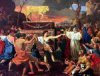 Картину Николя Пуссена "Пляски вокруг золотого тельца", разрисованную вандалом, отреставрировали и вернули в экспозицию Лондонской национальной галереи. Об этом сообщает The Telegraph. Инцидент, потребовавший реставрации картины, произошел днем 16 июля. 57-летний мужчина, пришедший в галерею, практически целиком закрасил "Пляски вокруг золотого тельца" с помощью баллончика красной краски. От рук вандала также пострадала еще одна картина Пуссена, "Поклонение пастухов". В настоящее время "Поклонение" тоже восстановили и вернули в экспозицию. После инцидента в английской прессе началась дискуссия о необходимости повышения уровня безопасности в картинных галереях и досмотра личных вещей посетителей. Картина "Пляски вокруг золотого тельца", написанная Пуссеном в период с 1633 по 1634 год, изображает один из сюжетов Ветхого завета. Согласно библейской истории, когда Моисей ушел на гору Синай, где получил скрижали с заповедями, евреи отреклись от Бога Израиля и стали поклоняться идолу в образе золотого тельца.