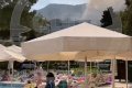 Уточняется, что запись сделана в поселке Гейнюк. Видно, как люди купаются в бассейне и лежат на шезлонгах, а позади, за пределами отеля, дымится лес.