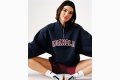 На размещенном фото 29-летняя манекенщица предстала в бордовых шортах длины мини и темно-синей кофте, оформленной молнией и надписью в виде названия бренда. Дженнер позировала перед камерой, сидя на полу и раздвинув ноги в стороны. Ее внешний вид дополняли белые носки и кроссовки.