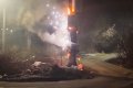 На кадрах видна объятая огнем вышка.